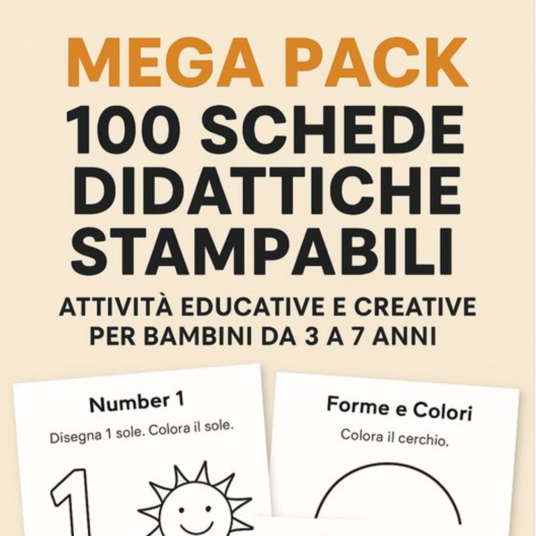 ✨ Mega Pack 100 Schede Didattiche Stampabili per Bambini ✨